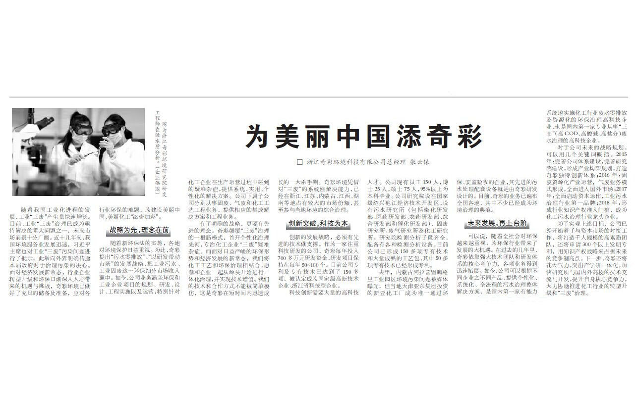 公司新聞27.04.2015為美麗中國添奇彩隨著我國工業化進程的發展,工業“三廢”產生量快速增長。目前,工業“三廢”治理已成為亟待解決的重大問題之一,未來市場前景十分廣闊。 Read Moreadmin