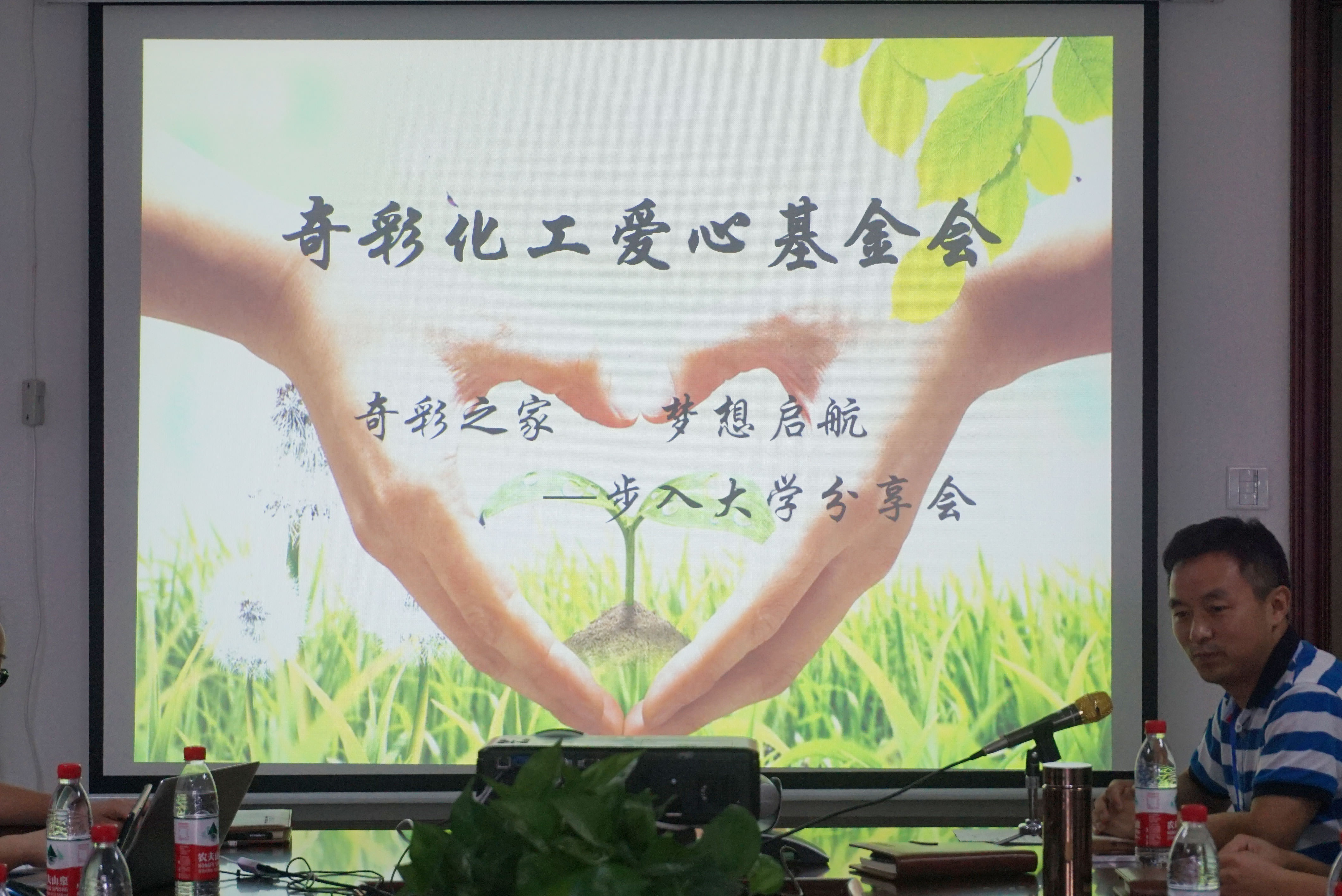 2014年8月28日,“奇彩愛(ài)心基金會(huì)”特邀23名學(xué)生及其家長(zhǎng)參與了“奇彩之家,夢(mèng)想啟航——步入大學(xué)分享會(huì)”。公司領(lǐng)導(dǎo)及數(shù)名碩博學(xué)歷的員工與學(xué)生們進(jìn)行了深度交流分享,讓學(xué)生們對(duì)大學(xué)里的生活、學(xué)習(xí)、夢(mèng)想、情感等方面有了正確的理解,得到了家長(zhǎng)們的極度好評(píng)。